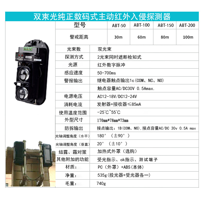 ABE三光束數碼紅外對射室外探測,廠家直銷 1、防雷擊電路設計 2、專業抗干擾光學外罩 3、日本同禾大功率 紅外發射芯片 4、SMT工藝