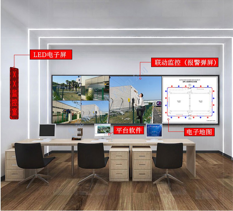 4、每個防區的脈沖圍欄需要和現場的監控形成聯動,并且需要根據設置的防區做成物理電子地圖,配合聯動,綜合分析周界報警情況。