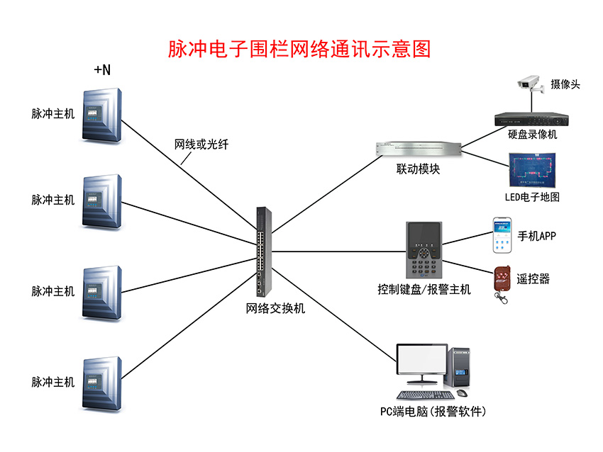 脈沖電子圍欄報(bào)警系統(tǒng)示意圖——網(wǎng)絡(luò)通訊