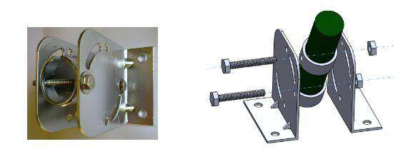 根據上圖可知,拓天電子圍欄受力柱底座有左右倆個底座構成,采用80膨脹螺絲4孔固定,且角度可以萬向無極調角度(可選擇90度直立安裝也可以選擇如圖的傾斜安裝),中間添加圓形抱箍墊圈,外部添加螺帽和墊片,保證了圍欄的整體強度。另外底座的整個厚度達到3毫米以上且是熱鍍鋅不上繡,使用壽命最低可達到5年以上。