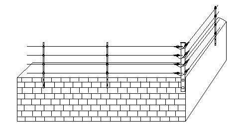 5、 圍欄線應采用分段安裝的方式固定,同一條直線或同一防區建議分為一段。不在同一條直線上的可以分幾次安裝。這樣施工清晰明朗,循環有序。