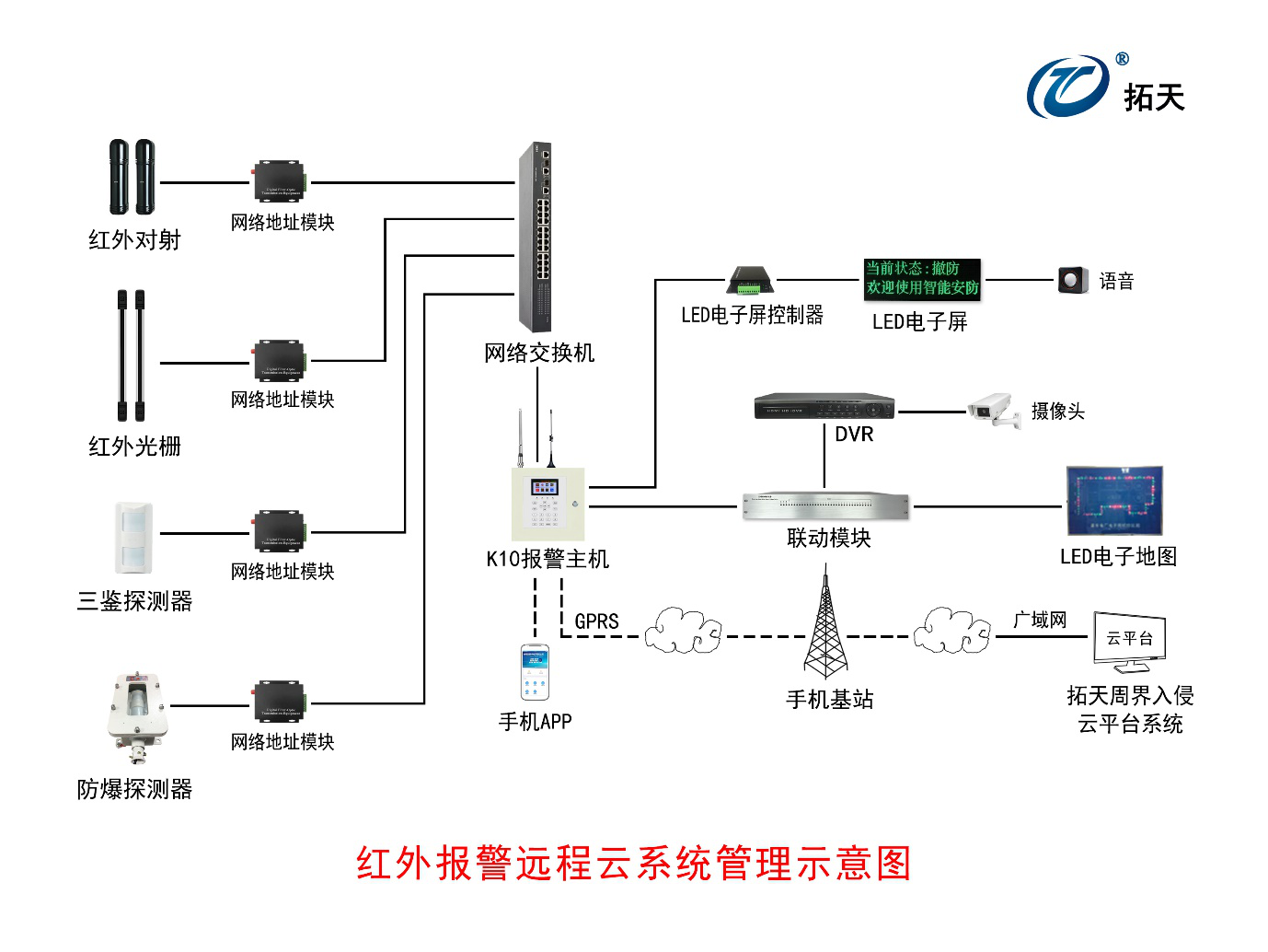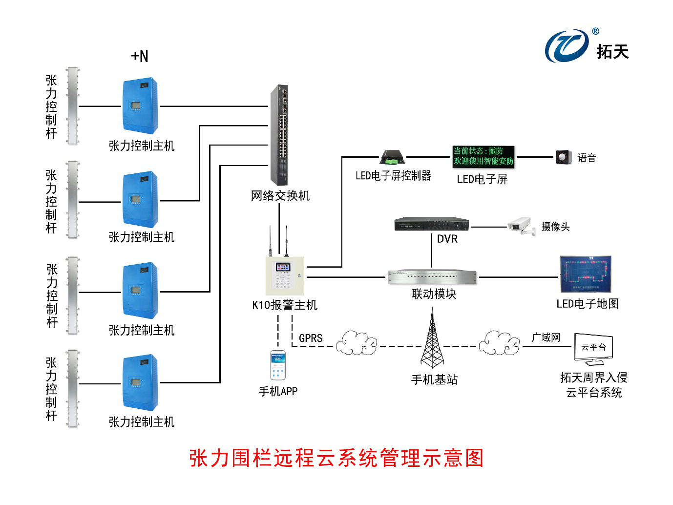 全面支持接入脈沖電子圍欄、張力電子圍欄、泄漏電纜、振動光纖、地址碼等周界報警設備,并實現集中統一管理。云平臺軟件可以連入多達幾百個GPRS報警主機