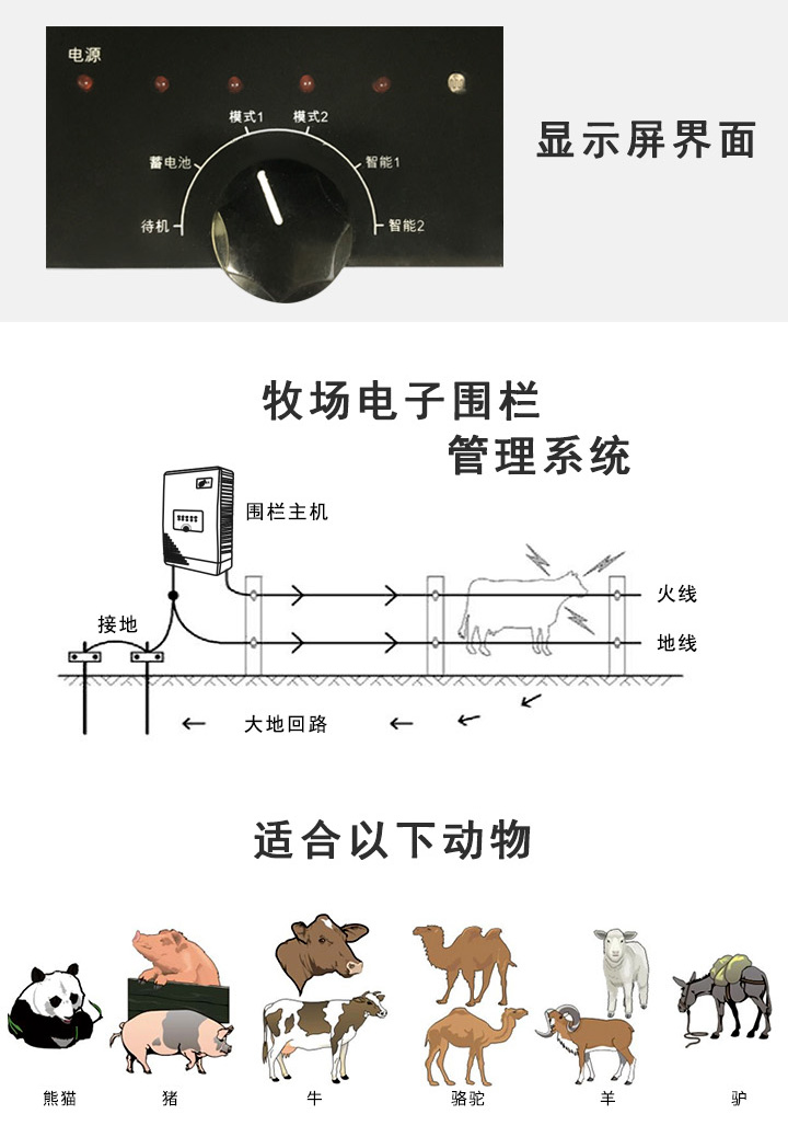 • 適用于牧場、養殖場、動物園等,可以限制圈養動物的活動范圍;