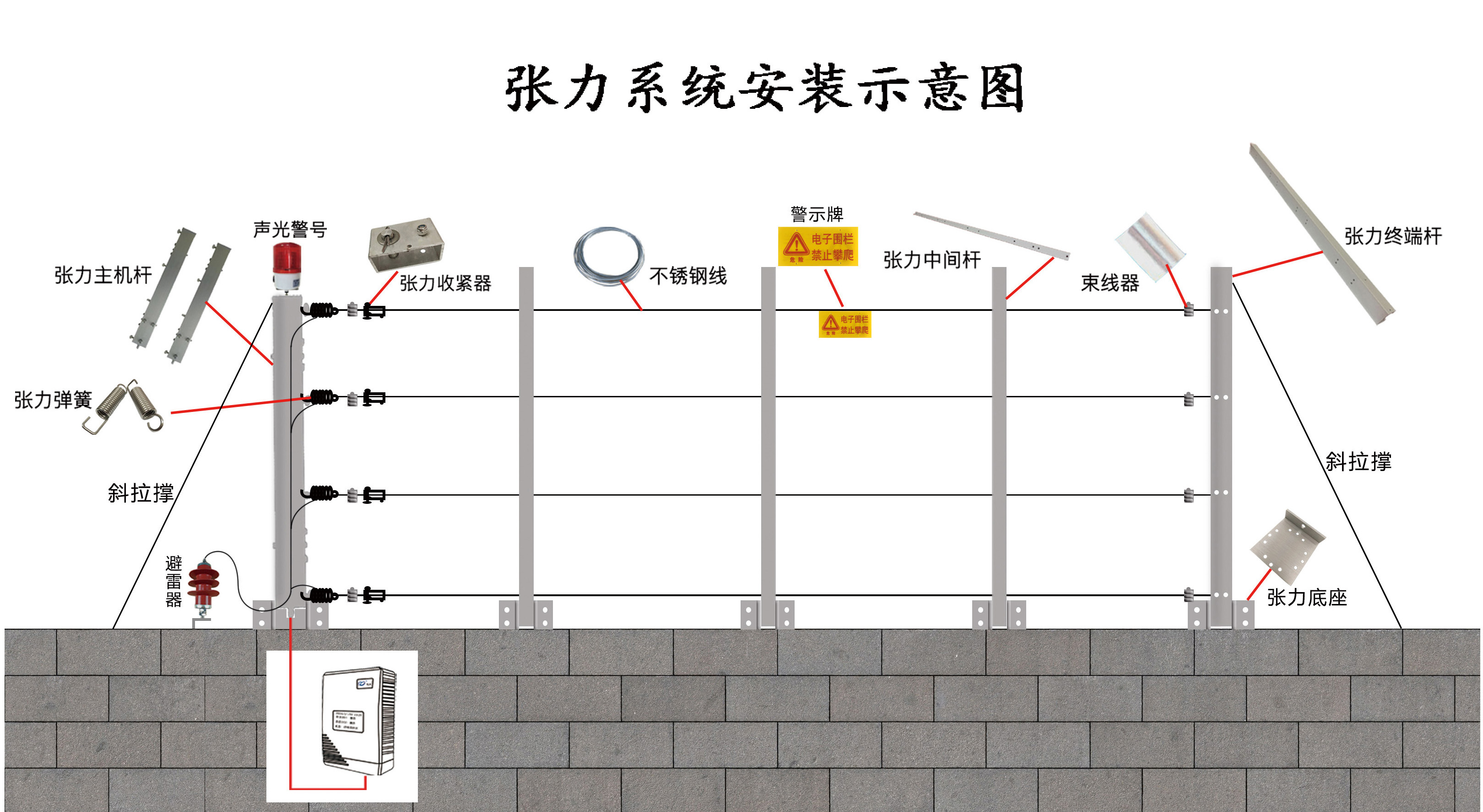 張力電子圍欄系統緊線器,安防受力感應圍欄鋼絲繩收緊自鎖功能,精密加工,鋁合金材質,不生銹,使用所有張力電子圍欄。最大可穿入3mm鋼絲繩,采用小齒齒輪收線更均勻平衡、好用。