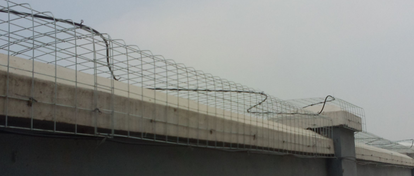 2.3 在裝有滾刺籠的墻頂上加裝振動傳感光纜的施工方式。起到物防加技防的雙重作用。常見的是在機場、國防防護這類場合的周界應用。